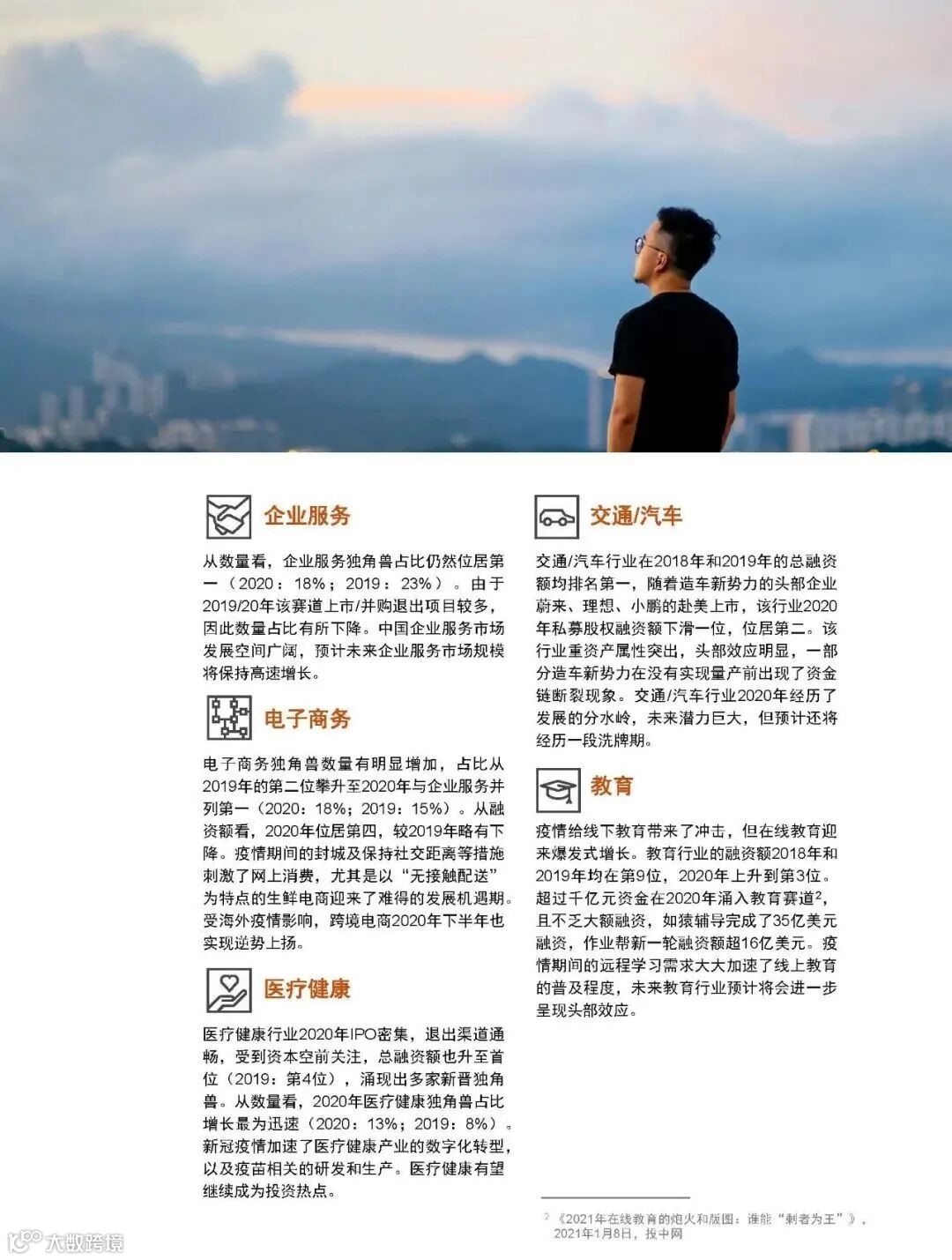 在中国经济总量持续增长的大背景下,科技驱动已被视为国家发展的战略支撑。依托国内巨大市场需求,中国企业必将在科技创新的新征程取得更多成就,并从国内巨大而且多元的消费市场收获其他市场不可比拟的丰富经验。无论科技,还是商业模式,相信中国独角兽企业都有无限潜能。