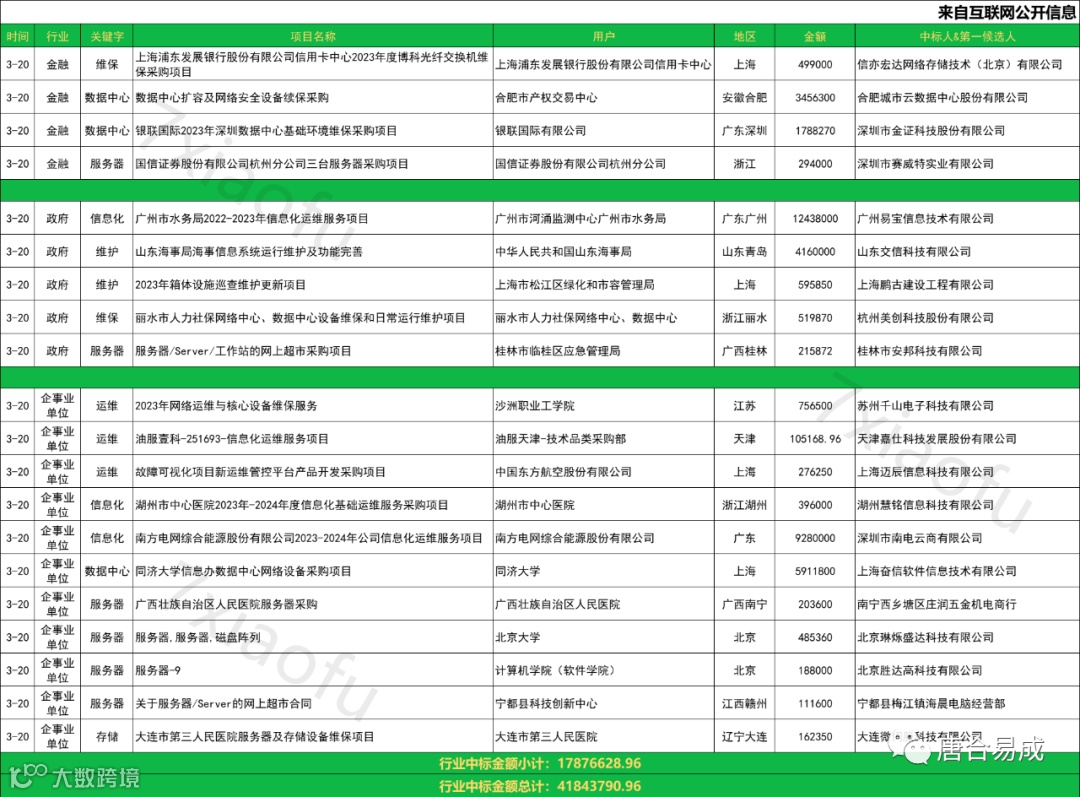 数据中心、信息化、维护、维保、运维中标信息
