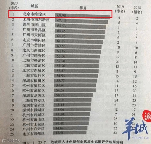 评估结果显示,就城区而言,北京海淀区评估得分最高,上海浦东新区、深圳南山区、广州番禺区和天河区紧随其后。