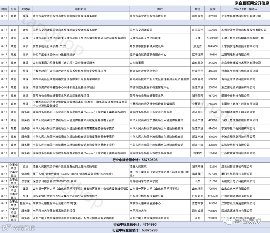 数据中心、信息化、维护、维保、运维中标信息