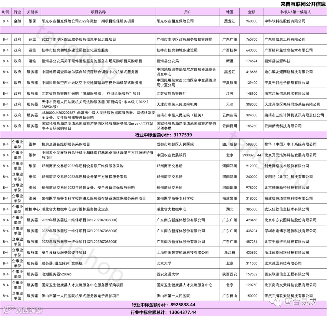数据中心、信息化、维护、维保、运维中标信息
