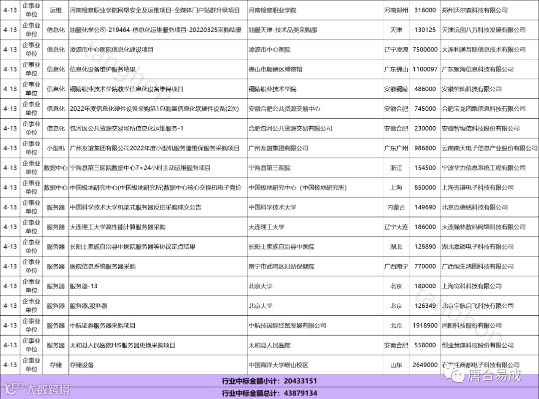 唐合易成 提供IT运维及维保、机房搬迁、容灾备份、数据迁移服务;服务器、小型机、存储、网络及安全等设备的整机和备件销售;整机及备件租赁;数据库、中间件、备份、虚拟化等各类软件的支持与服务。