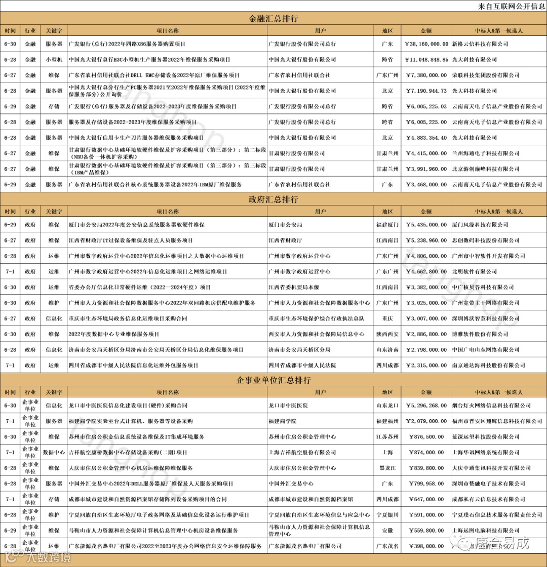 数据中心、信息化、维护、维保、运维中标信息