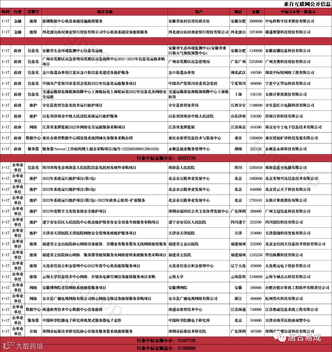 数据中心、信息化、维护、维保、运维中标信息