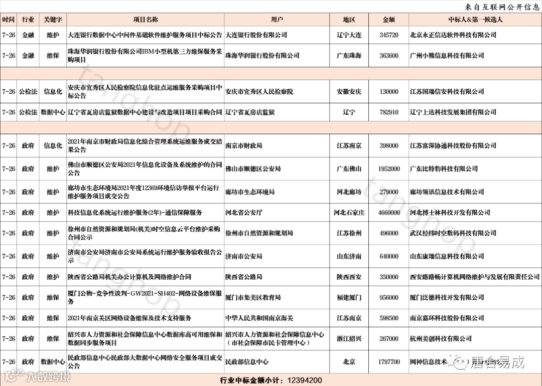 》IT 运维及维保、机房搬迁、容灾备份、数据迁移。