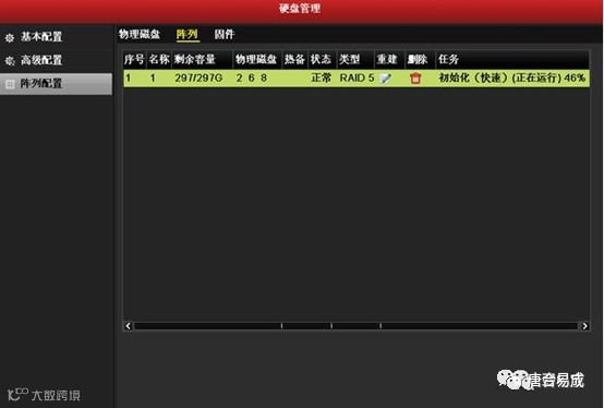 查看磁盘状态。阵列初始化结束后,系统将自动初始化创建的磁盘,当初始化完成,状态显示为"正常"。