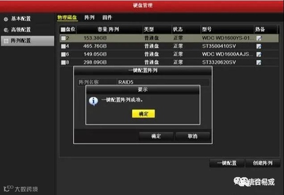 输入阵列的名称,单击"确定",开始创建阵列。创建成功,弹出"一键配置阵列成功"提示信息。