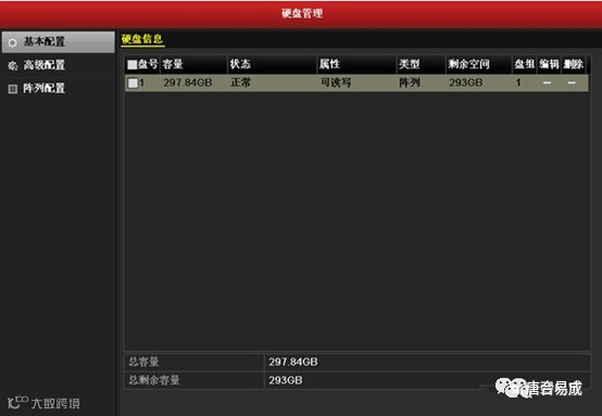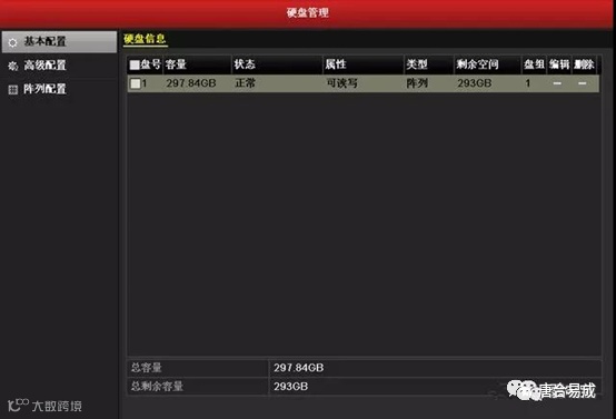 选择"主菜单 → 硬盘管理 → 基本配置",进入"基本配置"界面。查看磁盘状态。设备将自动初始化创建的磁盘,当初始化完成,状态显示为"正常"。