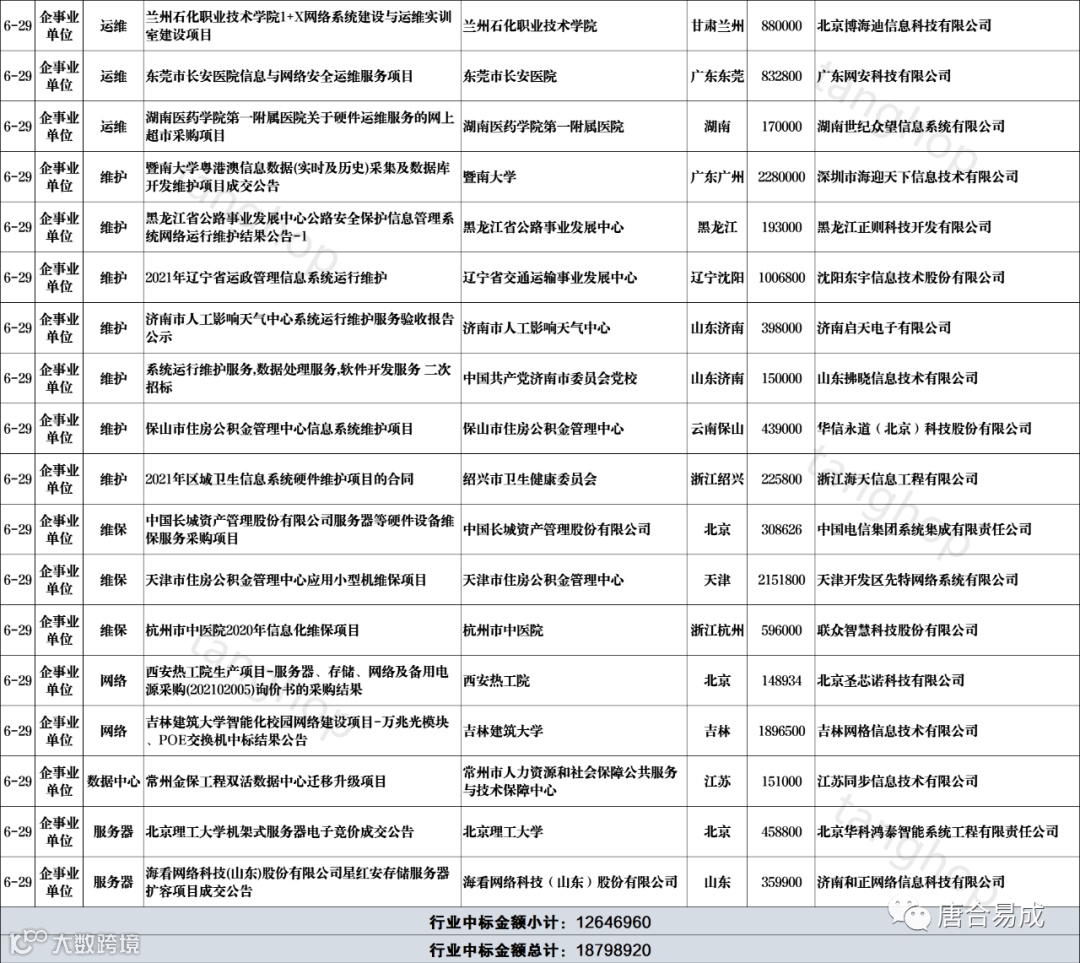 数据中心、信息化、维护、维保、运维中标信息