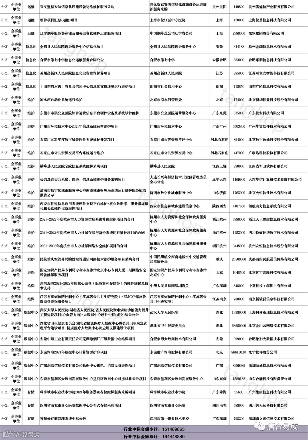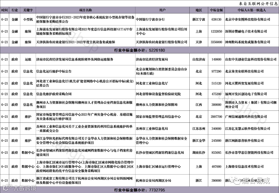 数据中心、信息化、维护、维保、运维中标信息