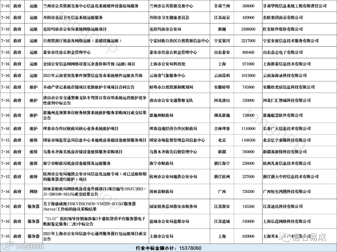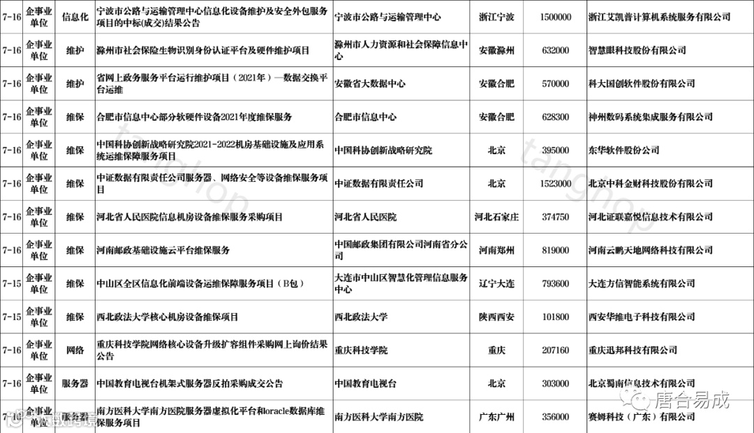 数据中心、信息化、维护、维保、运维中标信息