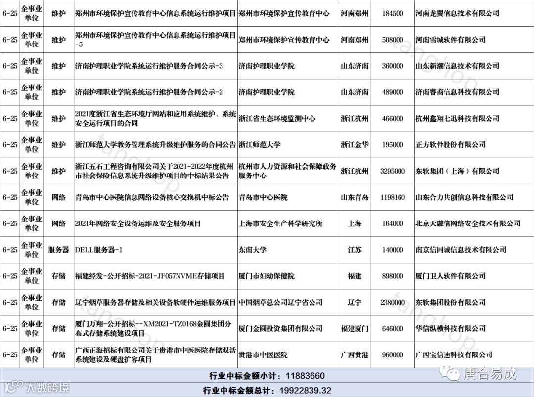 数据中心、信息化、维护、维保、运维中标信息