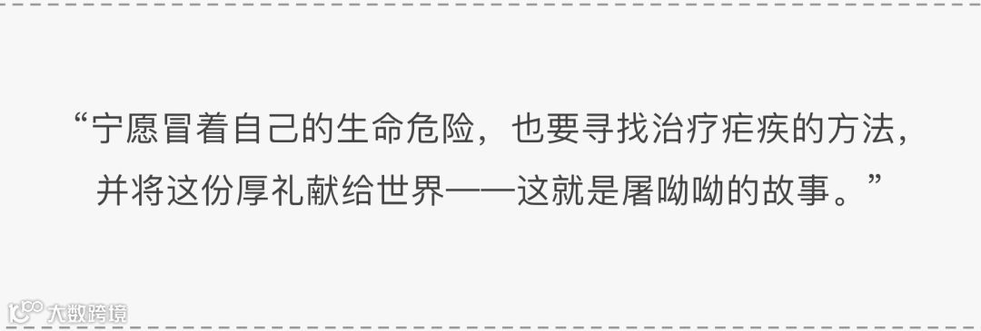 但在她刚刚发现青蒿素时,这种药剂在临床中对小白鼠出现了毒性,作为两个孩子的母亲,她竟然主动要求成为实验对象,并在实验中不断加大药量,观察内脏是否衰竭,冒着生命危险证明了药剂的安全性。