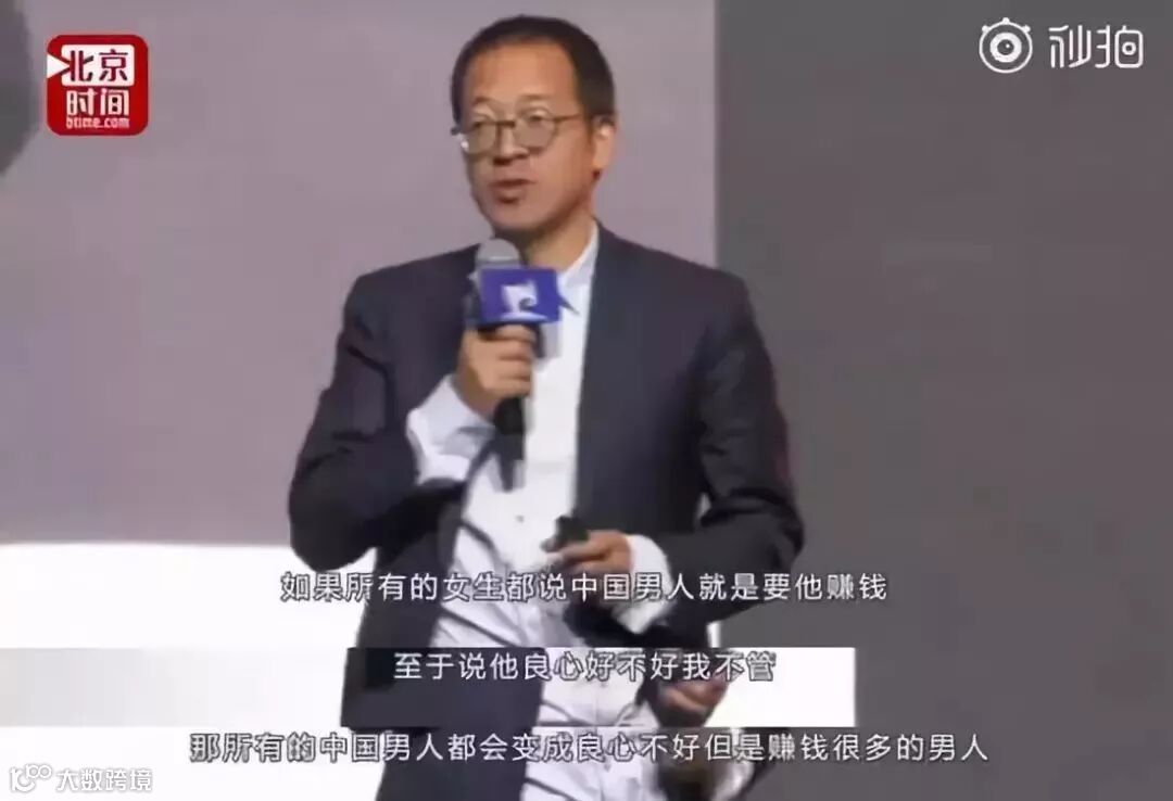 “如果所有的女生都说中国男人就是要他赚钱,至于他的良心好不好我不管,那所有中国的男人都会变得良心不好。但是赚钱很多的男人,这正是现在中国女生挑选男人的标准。”