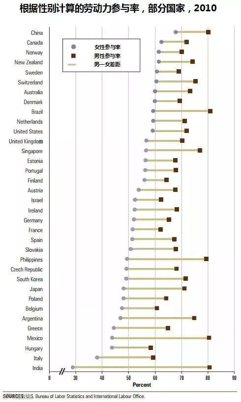 据美国国家统计局的一组数据显示,中国女性的劳动参与率达68%,超过大多数发达国家,位列第一名。