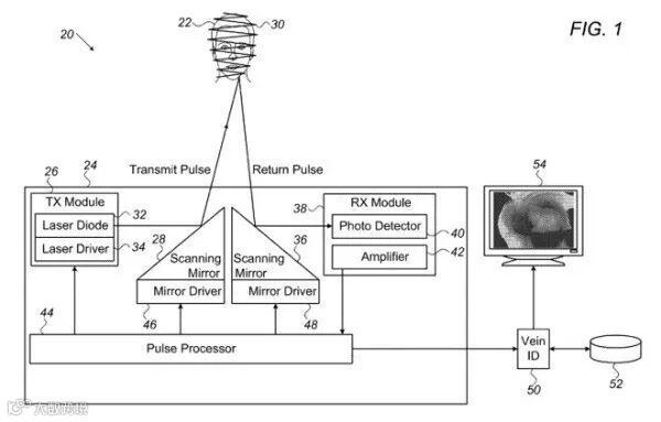 日前美国专利商标局公开了一份苹果的专利,该专利名称是“用脉冲辐射检测静脉成像”,该专利的技术原理是通过红外线检测到皮肤下静脉血管的形状,然后对比之前识别到的图像,实现生物识别。由于有同卵双胞胎兄弟姐妹的存在,所以目前的指纹和人脸识别技术还是不能做到百分之百精准识别,而iPhone X脸部识别的安全性堪忧,此前有用户反映,与自己长相接近的亲人能解锁自用的iPhone X。苹果表示,世界上不会出现两个完全一样静脉,所以用户的静脉信息100%不可能被复制,另外由于红外线不会直接接触到皮肤,所以这种识别方式比指纹更加卫生。