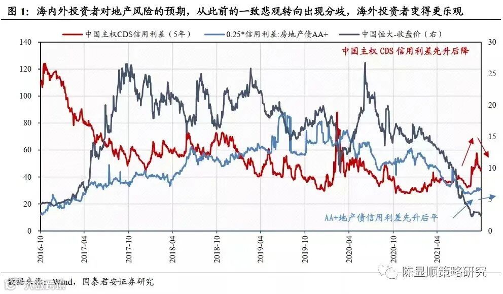 我们认为在悲观情绪集中宣泄之后,市场并无系统性调整风险。站在当前时点,机构投资者开始着眼于2022年的宏观环境做配置,其中地产投资下行压力是投资者的核心关切。从债券信用利差看,海内外投资者对地产投资的预期,从此前的一致悲观转向出现分歧。10月中旬后中国主权债CDS信用利差下降,AA+级地产债信用利差平稳,表明海外投资者对国内房地产领域的担忧有所缓解。结构配置上,我们维持10月以来“站在风格切换的起点”与“低估值收获季”的判断,配置逻辑从周期转向消费,从前期高景气进攻转向低估值防御。