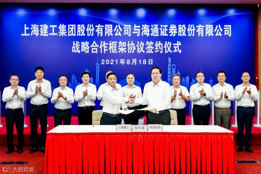 8月18日,海通证券与上海建工举行战略合作协议签约仪式暨海通大厦项目启动仪式。上海市黄浦区区长沈山州,海通证券党委书记、董事长周杰,党委副书记、总经理瞿秋平,党委副书记赵永刚,上海建工党委书记、董事长徐征,监事会主席周平,党委副书记、总裁卞家骏等出席签约仪式。