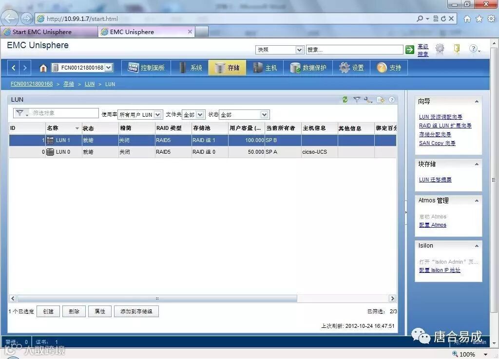 12.右键需要挂载lun的存储组名称,选择“选择LUN”和“连接主机”进行需要的操作。。
