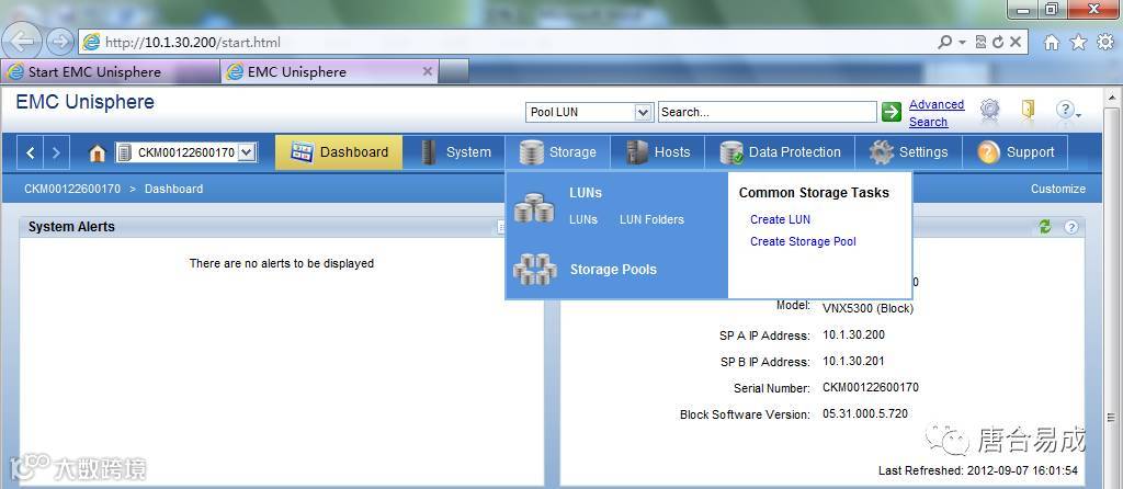 2. 连接计算机与存储任意一个SP的管理口,浏览器直接键入存储任一控制器Ip地址。SPA:1.1.1.1,SPB:1.1.1.2(截图为引用)