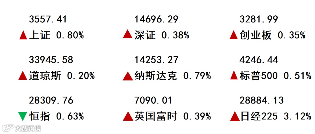 以上9大指数中,有超过6个指数行情表现为上涨,当日表情为晴;有4-6个指数行情表现为上涨,当日表情为阴;有超过6个指数行情表现为下跌,当日表情为雨。