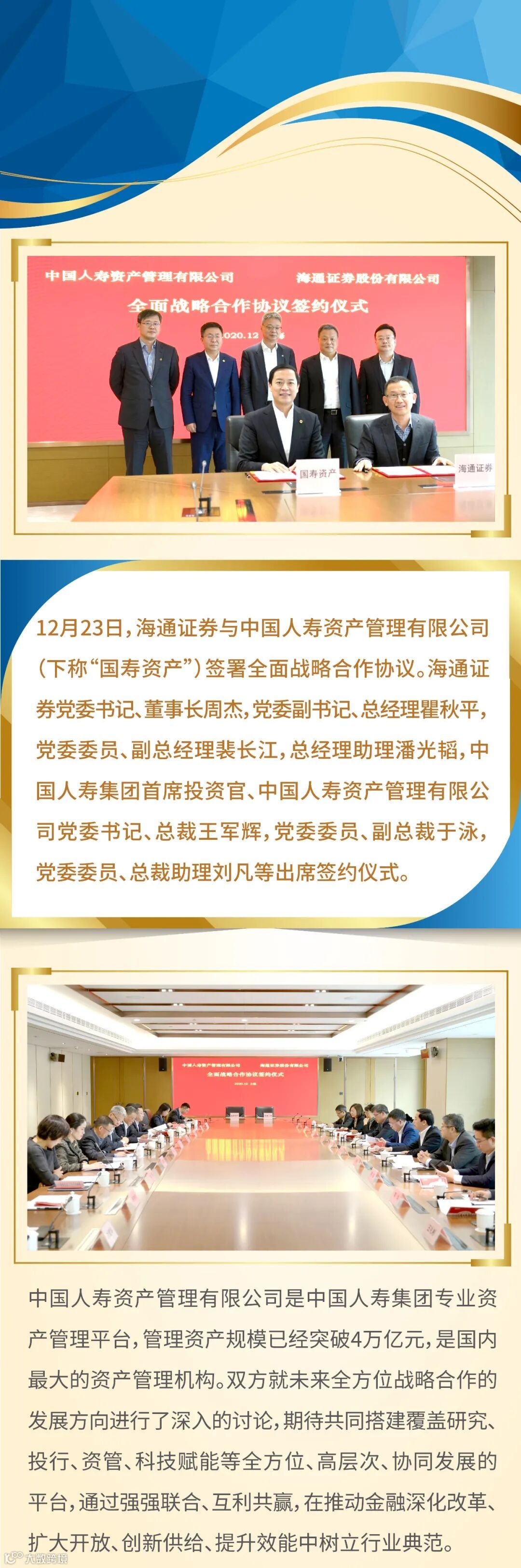 海通证券与中国人寿资产管理有限公司签署全面战略合作协议