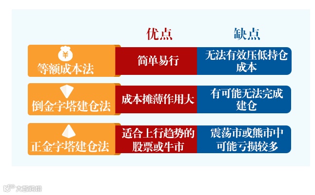 正金字塔建仓法适合牛市或者处于上涨趋势的股票,在震荡市或者下行的市场环境中,正金字塔加仓法会拉高整体投资成本。