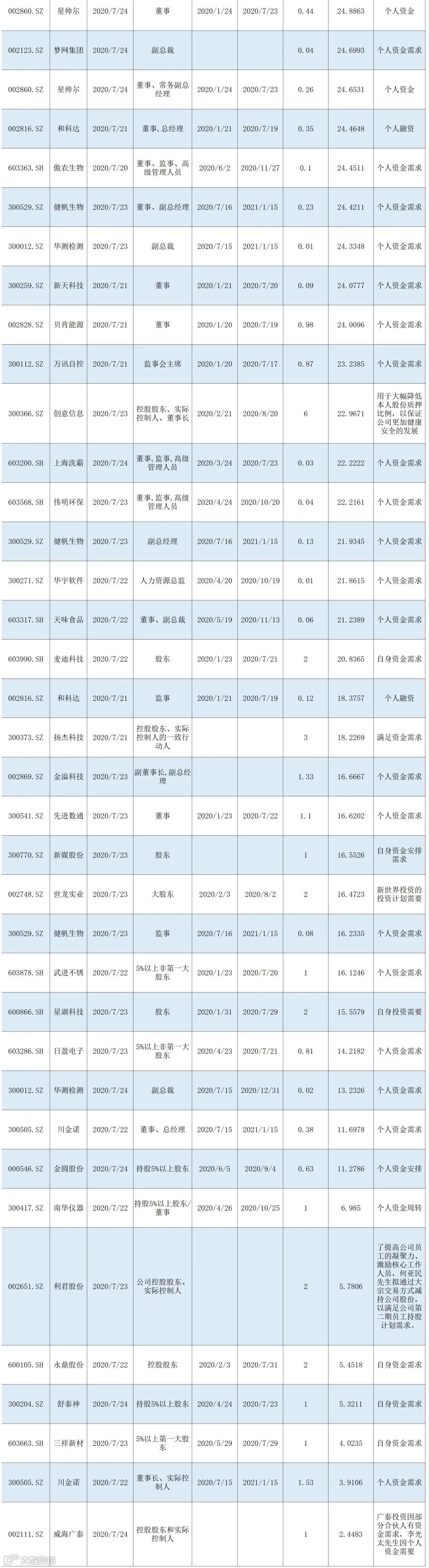 据wind数据统计,在7月24日最新公布的信息,目前完成重要股东减值申报的公司,按照拟最大变动数量占持有公司股份比例(代表重要股东的个人意愿强烈程度)依次排列如下: