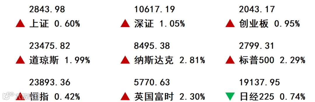 以上9大指数中,有超过6个指数行情表现为上涨,当日表情为晴;有4-6个指数行情表现为上涨,当日表情为阴;有超过6个指数行情表现为下跌,当日表情为雨。