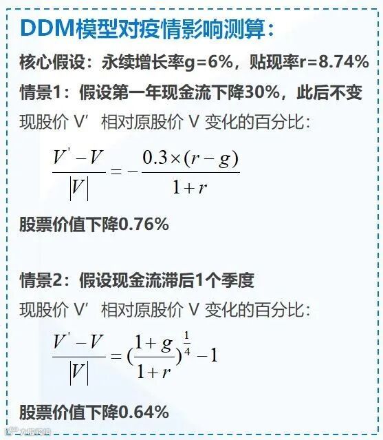 为什么会是这样?我们用一个简单的DDM模型给大家推导一下,实际上疫情对A股的影响到底有多少?