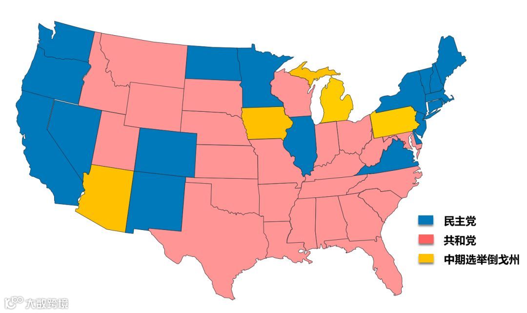 『2018年众议院中期选举时,民主党在亚利桑那州、爱荷华州获胜,在宾夕法尼亚州和密歇根州与共和党各自获得了一半席位。而这四个州在2016年大选时均被共和党拿下。 』