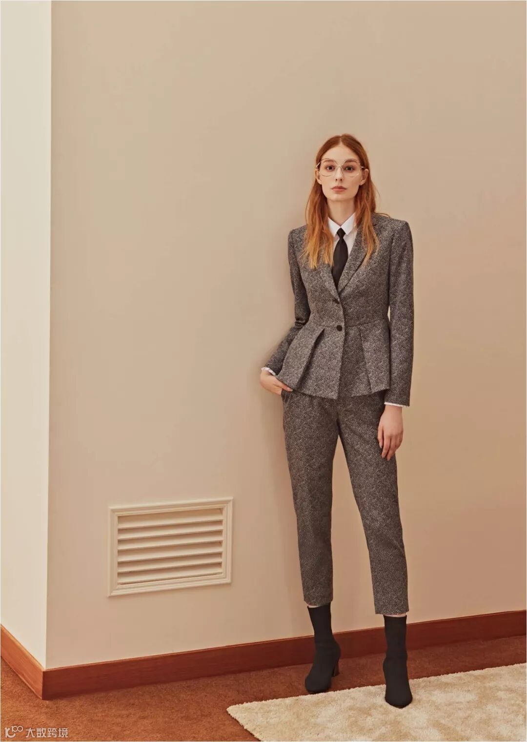 为女性精英专属设计,硬朗的西装下的大花边下摆,衬出强大气场又不失温柔,高级灰更为气质加分,高级质感下的精致职场穿搭。