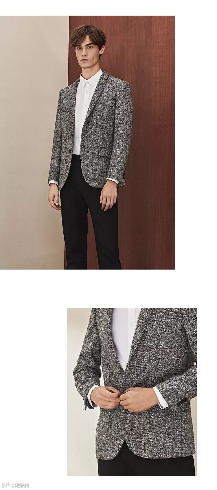 灰色休闲西服,褪去正装的束缚,更舒适的版型,松弛有度,服帖适合。