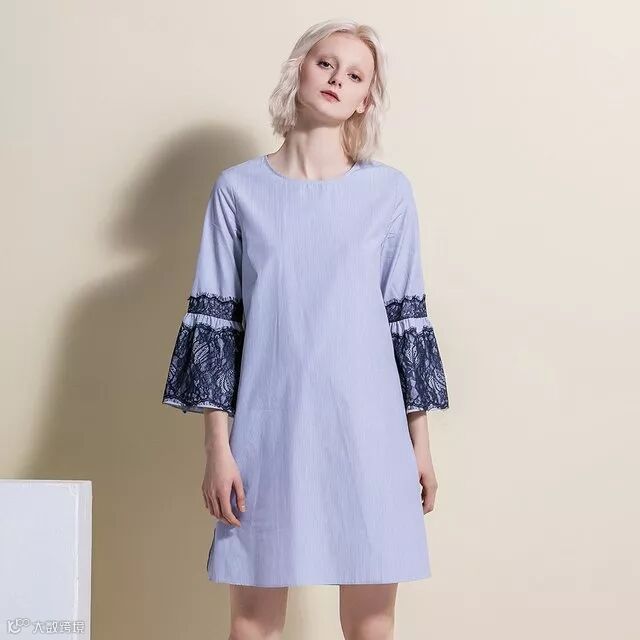 蕾丝拼接裙子 喇叭袖女连衣裙