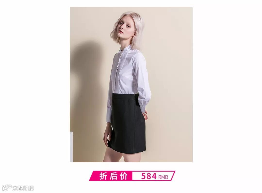 2018春夏新款OL黑白拼接假两件衬衫短裙