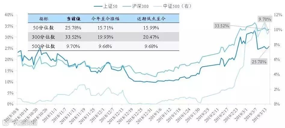 注:分位数计算以PE(TTM)为基础。上证50分位数历史起点为2004年1月2日;沪深300分位数历史起点为2005年4月8日;中证500分位数历史起点为2007年1月15日。