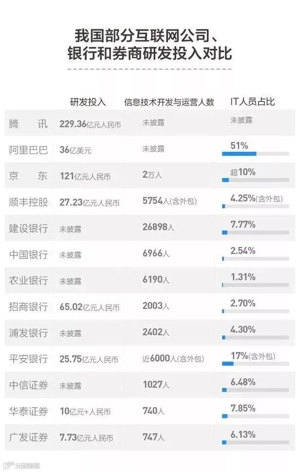 “国内互联网巨头的IT人员动辄上万人,支持一个APP的团队人数可能就有上千人,投入的费用更是远超券商。