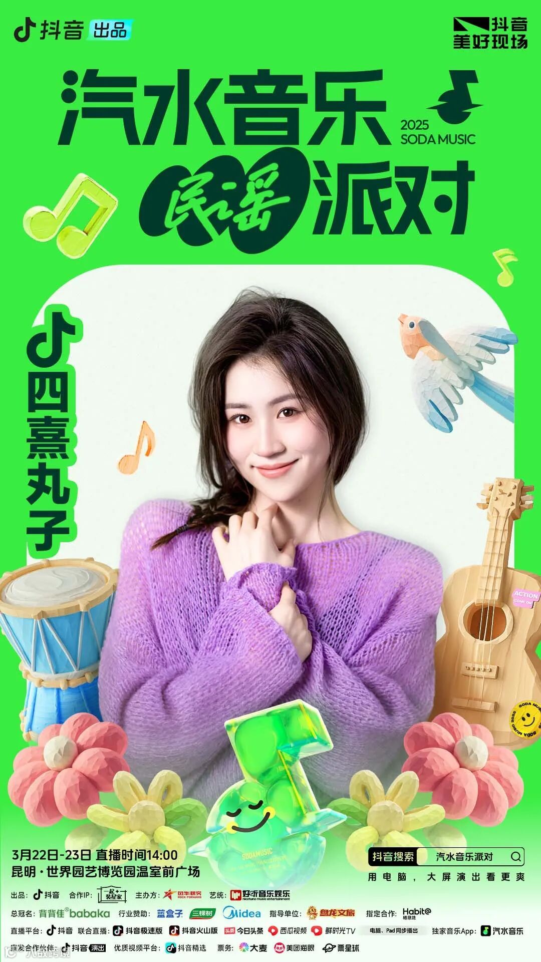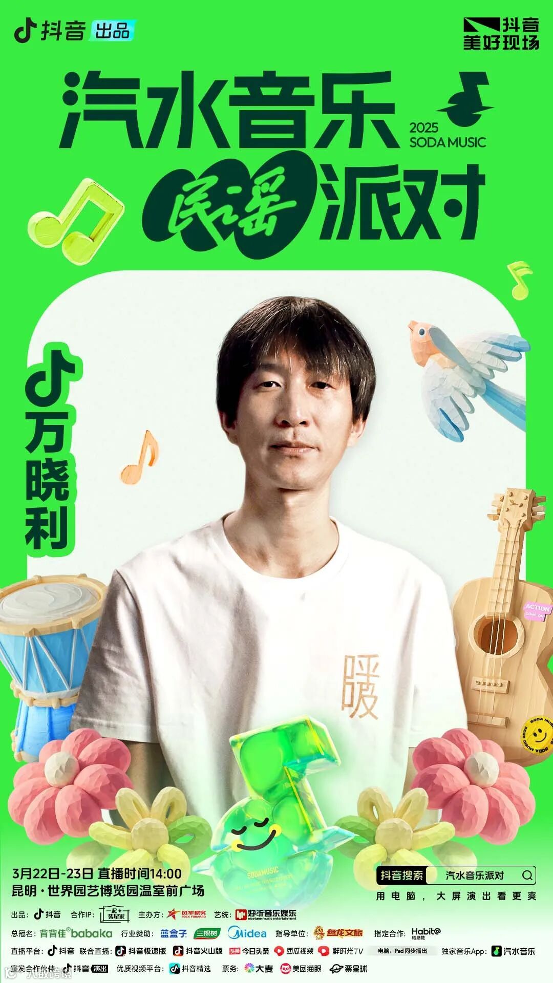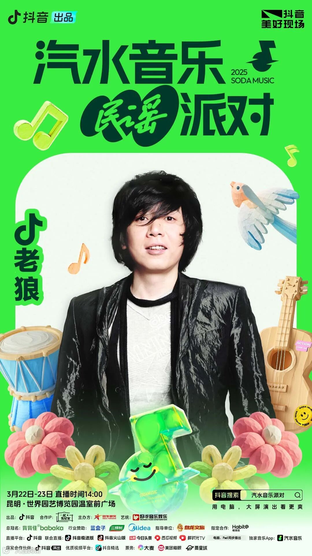 此派对含高浓度经典民谣,可能引发集体大合唱哦!3月23日14:00,汽水音乐民谣派对还邀请了四熹丸子、陈硕子、贰佰、莫西子诗、小河、钟立风、张玮玮、周云蓬、马条、万晓利、野孩子、老狼一同享受昆明春风,奉上一场安静又治愈的音乐现场。