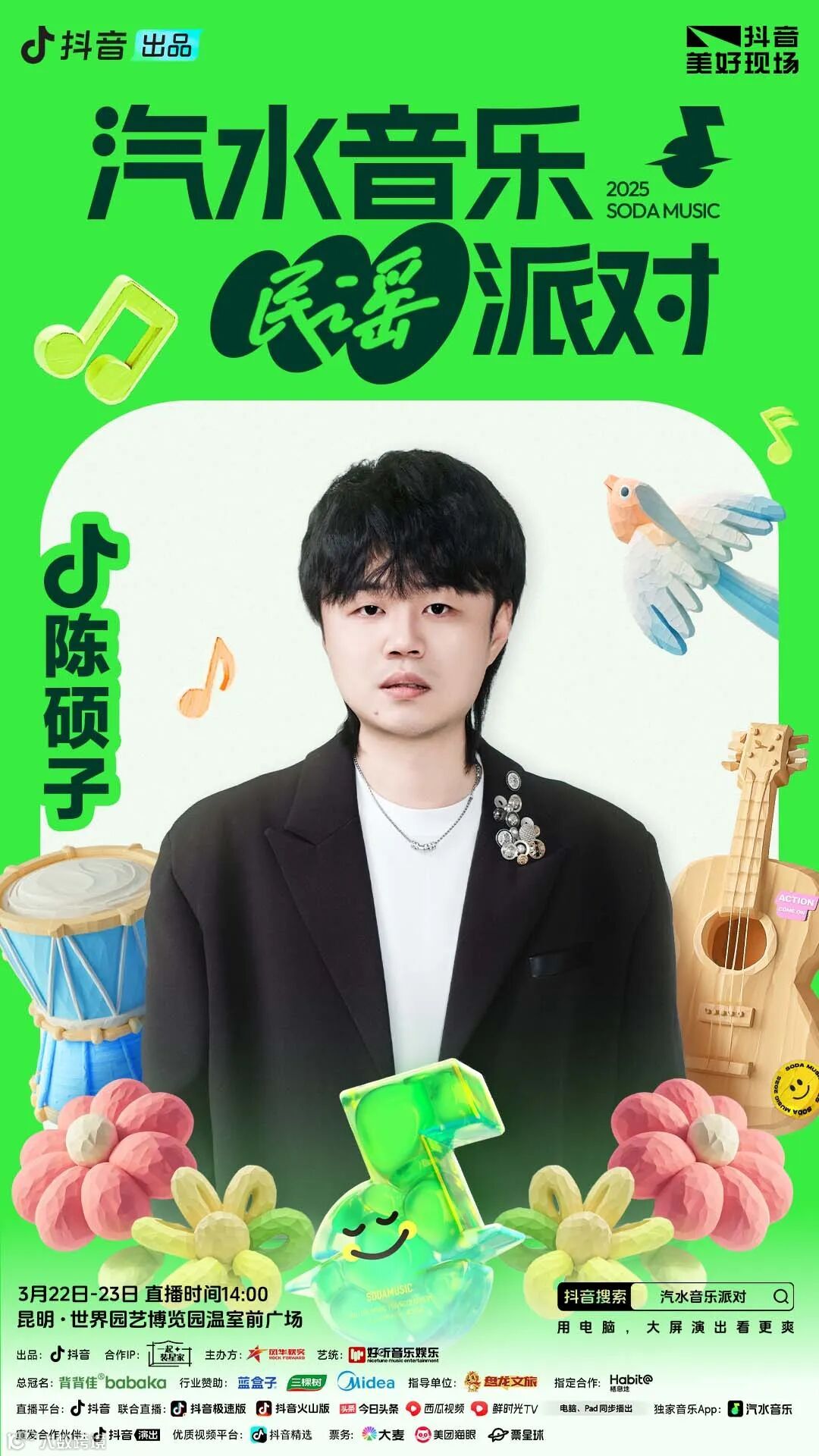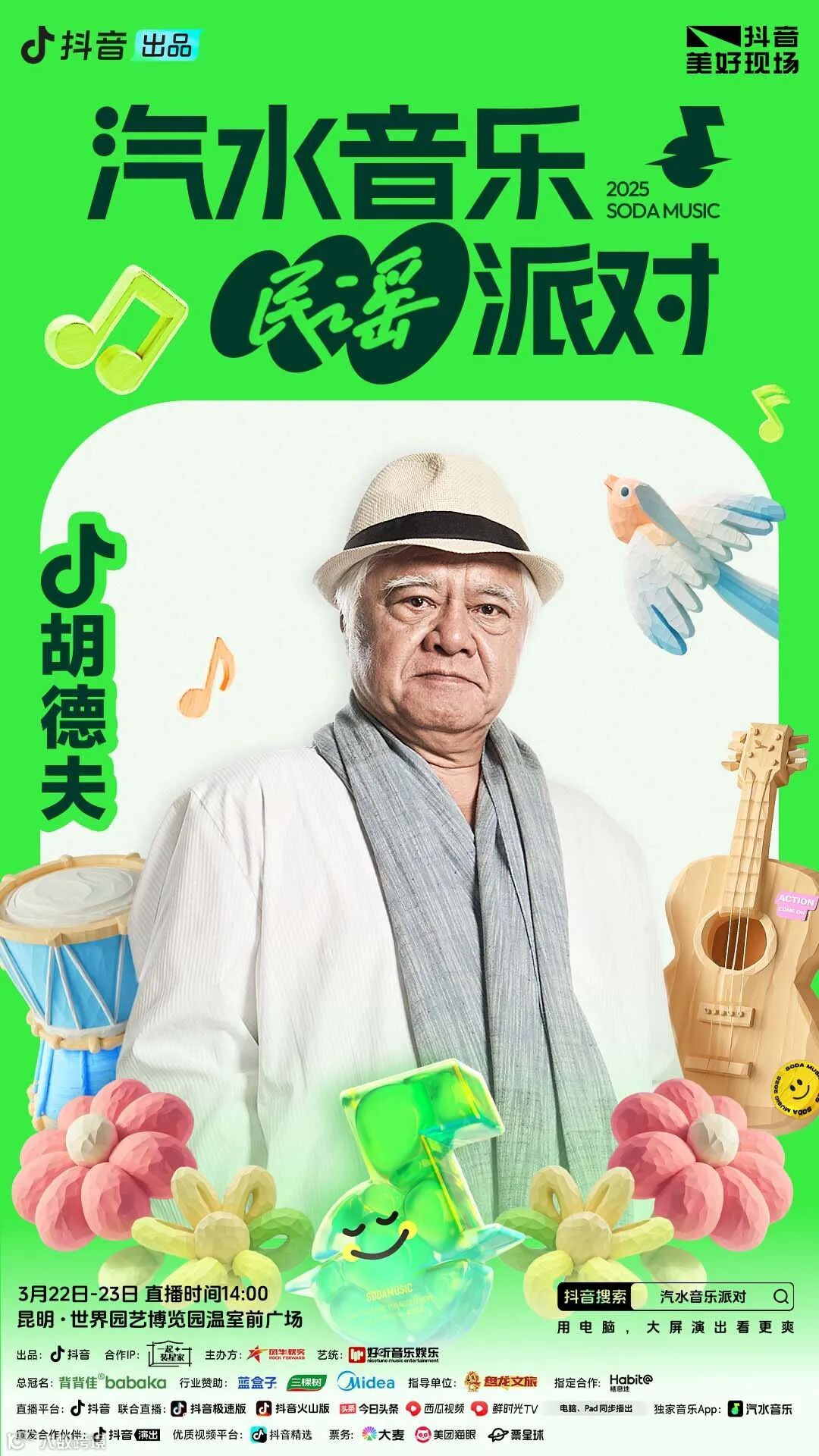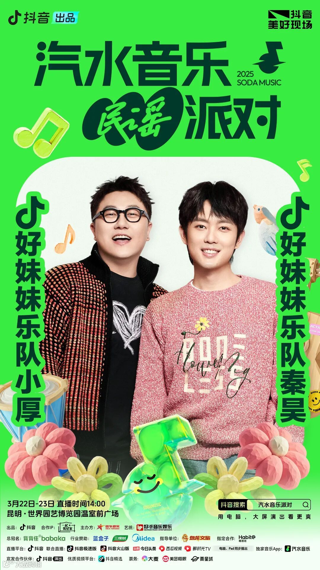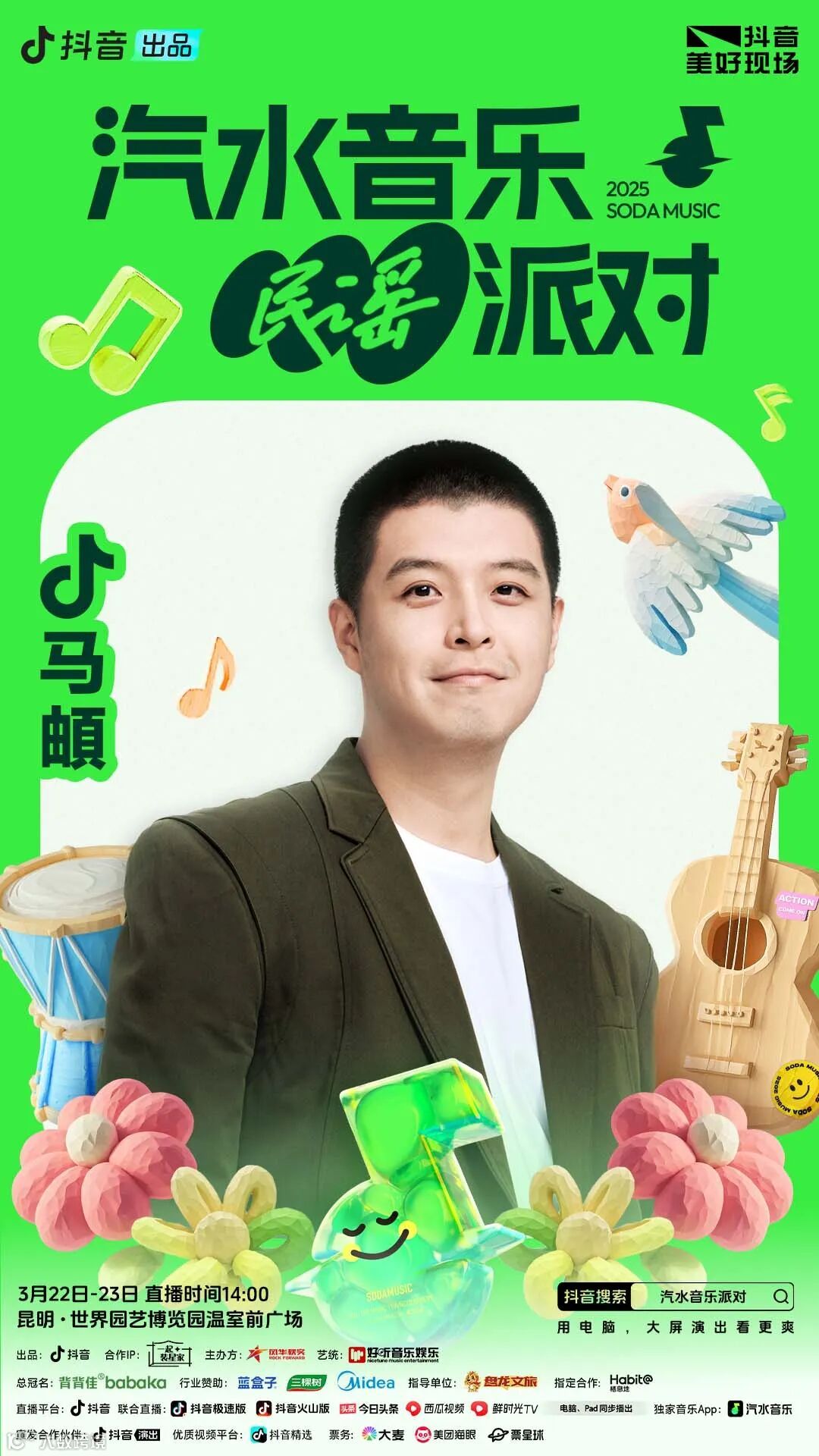 此派对含高浓度经典民谣,可能引发集体大合唱哦!3月23日14:00,汽水音乐民谣派对还邀请了四熹丸子、陈硕子、贰佰、莫西子诗、小河、钟立风、张玮玮、周云蓬、马条、万晓利、野孩子、老狼一同享受昆明春风,奉上一场安静又治愈的音乐现场。