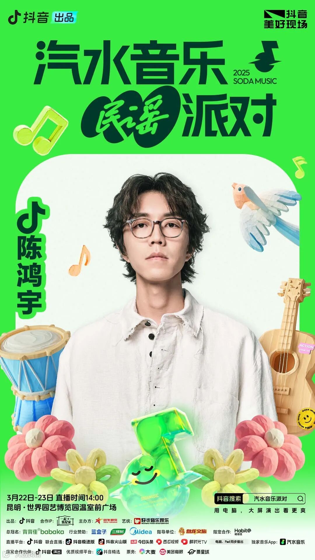 一众民谣新声,则用歌声讲述属于这个时代的青春故事——田鸿杰、陈鸿宇分别带来《鲁滨逊西游记》《理想三旬》等歌曲,用温柔嗓音轻而易举地直击所有人的心灵深处。柳爽选择用旋律勾勒生活的细腻与美好,讲述一个又一个真实的故事,将平凡日子里的情感波澜层层展现。丢火车、好妹妹乐队则会带来与众不同的乐队力量,《晚安》《不说再见》等歌曲于分秒之间点燃现场,让音符即刻跳跃在春夜的空气中。