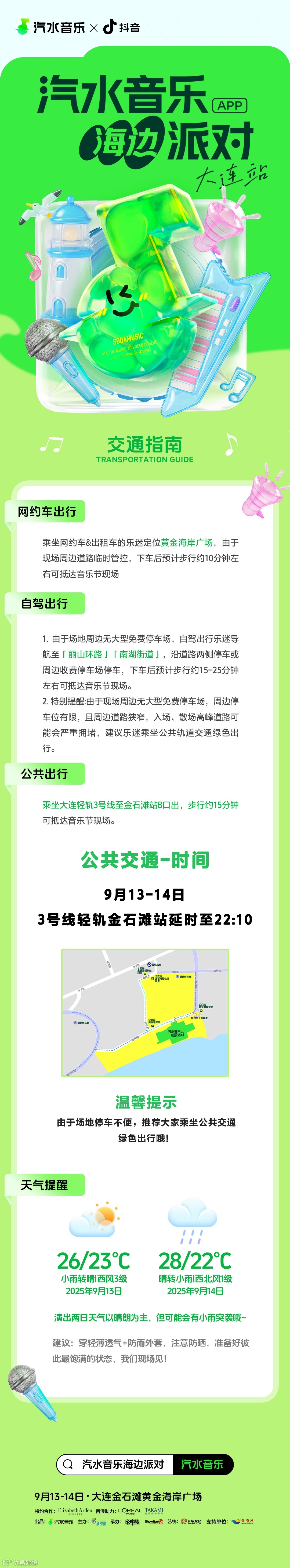 我们特地整理了一份路线指引,无论你是自驾还是乘坐公共交通前往,都能直观清晰地到达海边派对现场,喜欢赶点的P人再也不用担心交通障碍!