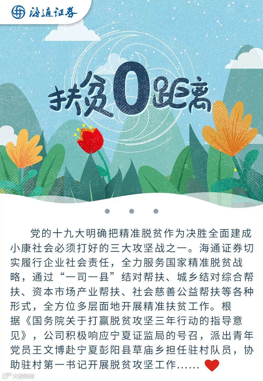 从城市到乡村、从公司到村部,穿梭于平原和山区之中,工作量和工作内容完全不同,我感受到现实生活发展的极不平衡,生活环境的巨大落差,仿佛置身穿越隧道。初来乍到,看到贫困户脱贫后喜悦地讲述生活水平的变化,看到新村部和扶贫产业的筹建完成,看到加班至深夜做出的20多份表册,作为新的扶贫工作成员,作为年轻的共产党员,作为一名90后海通青年,我内心深处对今后的驻村扶贫工作涌起一股股热血和激情。代表海通,扎根基层,服务人民,不虚此行。脱贫攻坚战,胜利在望!