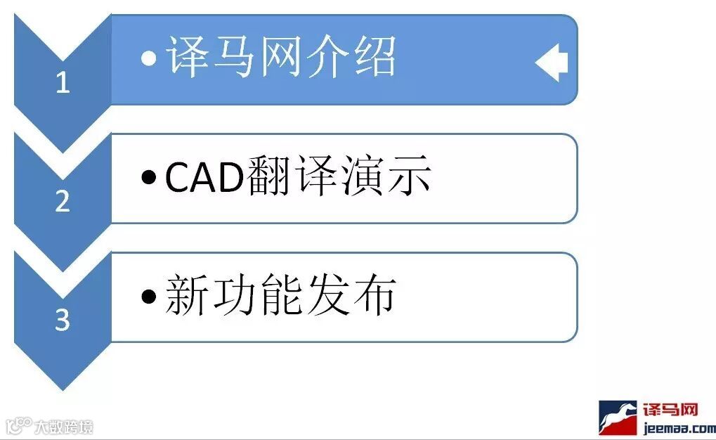 本次会议主讲人为译马网产品经理彭成超先生。演讲以“译马网 —— 致力于翻译生产的效率提升和成本节省”为主题,从译马网介绍、CAD翻译演示和新功能发布三个方面详细介绍了译马网帮助中小翻译企业及翻译团队提高效率和节约成本的具体实现机制。