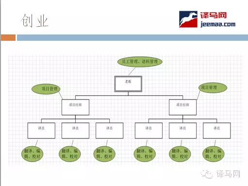 为什么全国有那么多翻译公司?因为创办翻译公司简单,翻译公司的组织架构更简单。一个老板,两个项目经理,六个译员,这已经算得上初具规模的翻译公司了。其实云翻译平台是一个天然的虚拟办公室: