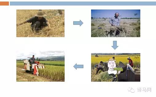 而作为生产力构成三要素之一的生产工具,对生产力有着最为直接的影响。在收割麦子和稻谷时,我们先后经历了“徒手拔麦”、“镰刀辅助”、“半自动化设备”和“收割机”这几个阶段。