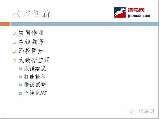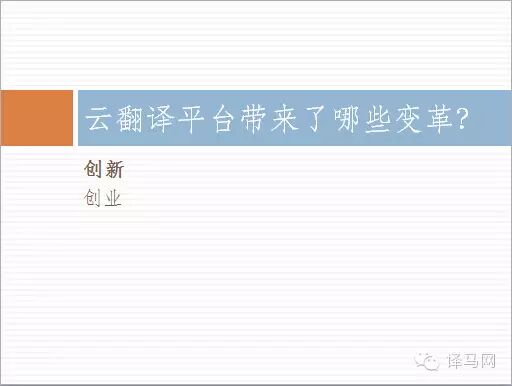 那么说好的变革呢,云翻译平台究竟给翻译行业带来了哪些变革?我想从创新和创业两个方面来谈下我的看法。