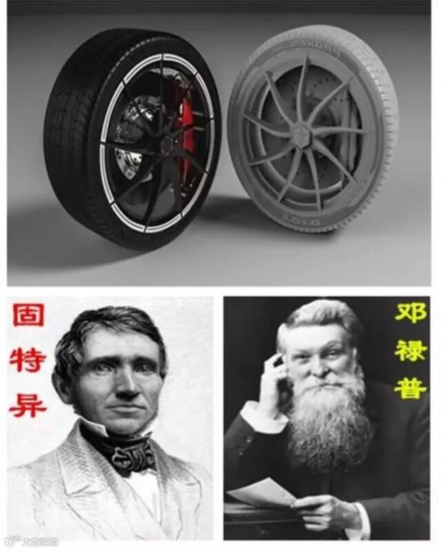 世界上最早的橡胶轮胎就是实心的,由美国人查尔斯•古德伊尔(即大名鼎鼎的固特异)发明,后来英国兽医约翰•邓禄普在此基础上发明了能充气的橡胶轮胎,被称为轮胎历史上最大的进步。