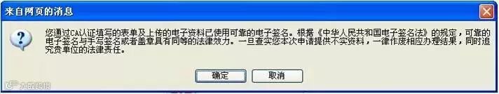 请仔细阅读提示信息,知晓CA证书的法律效力。如无问题,点击“确定”按钮继续操作。