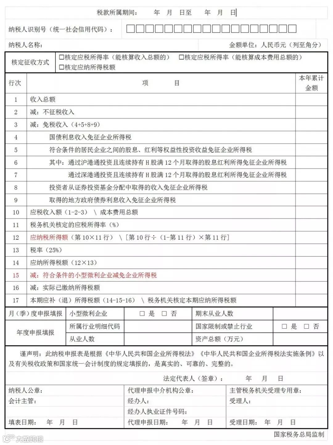 备注:以上是采取的网上申报模式,如果使用纸质申报表申报的小伙伴,表15行“符合条件的小型微利企业减免企业所得税”和16行“实际已缴纳所得税额”不能自动带出哦,需要您手工计算啦!