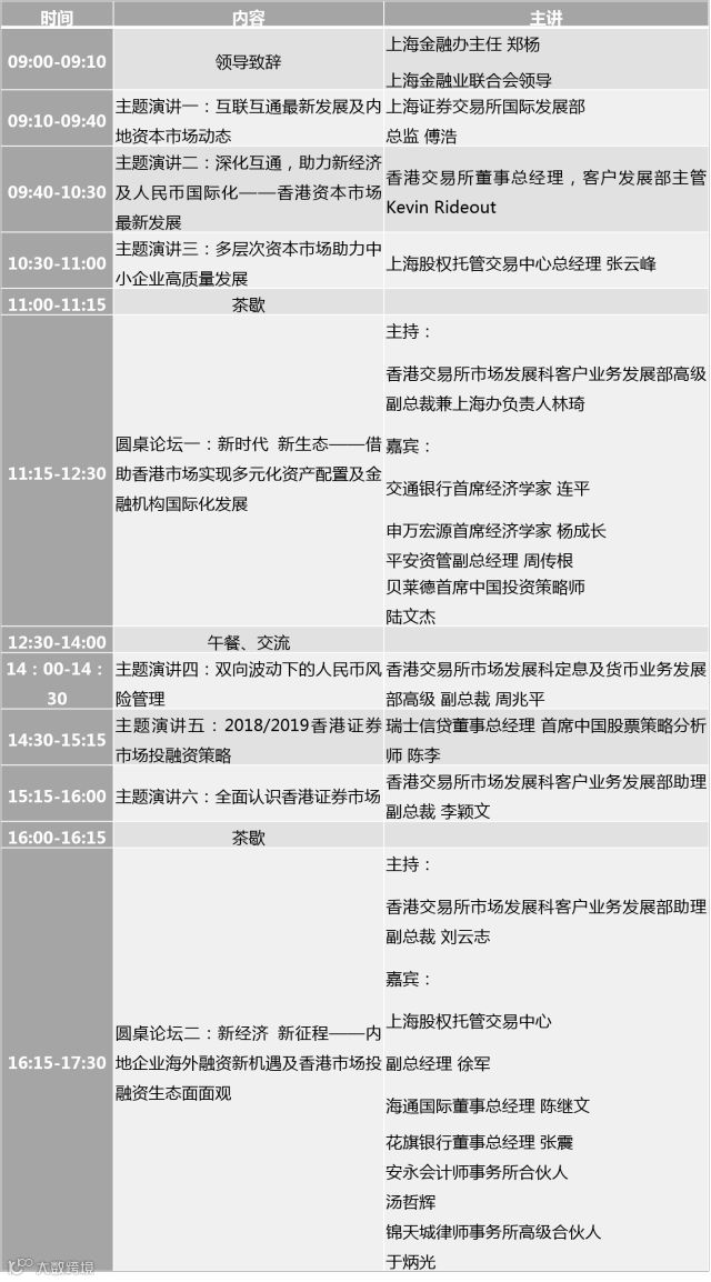 为进一步深化沪港金融合作,助力两地资本市场发展,发挥香港市场的投融资及风险管理功能,在香港交易所的支持下,上海金融业联合会将联合上海股权托管交易中心,在沪举办首届沪港投融资论坛。此次论坛将邀请香港、内地资本市场资深专家,全面、深入地解析香港市场,为在沪金融机构、企业创造一个了解香港市场、探讨共赢合作的一站式平台。